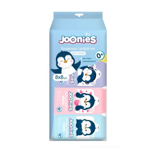 Влажные салфетки JOONIES подходят для очищения самой нежной кожи новорожденных. Состав на 99% из воды, с витамином Е. Не высыхают, благодаря удобной защелкивающейся крышечки и многоразовому клапану. без спирта, без отдушек, без липкости. Не вызывают аллергию и раздражений! 100% хлопок, размер салфетки 14*15 см. Приятная особенность: салфетки достаются строго по одной штучке и никогда не рвутся! 8 упаковок по 8 шт. в каждой (всего 64 штуки). Влажные салфетки подходят для новорожденных, для мальчиков и девочек, детей, семьи. Для очищения чувствительной кожи; для рук, лица, ног, тела.