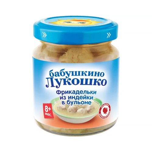 Фрикадельки имеют нежную консистенцию, так как изготовлены из гомогенизированного мяса. Индейка - нежное мясо с низкими аллергенными свойствами, богатое железом, которое необходимо для профилактики железодефицитной анемии у малышей.