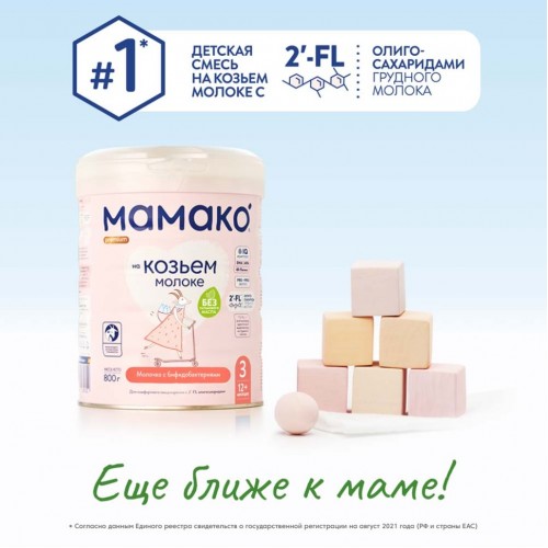МАМАКО® Премиум формула 3 — детское молочко с бифидобактериями от года: для комфортного пищеварения, поддержки иммунитета, развития мозга и зрения малышей. Подходит для докорма и искусственного вскармливания.