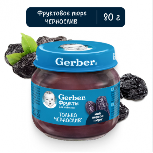 Фруктовое пюре Gerber® Чернослив - это первое знакомство малыша с разнообразием вкусов, приготовленное из натуральных фруктов, богатых клетчаткой, органическими кислотами, витаминами и минеральными веществами.