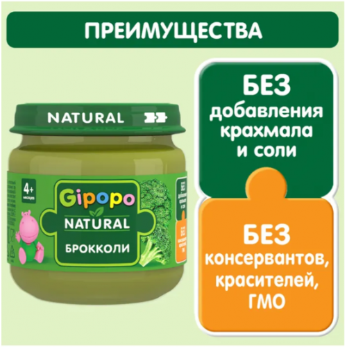 Пюре овощное детское из брокколи GIPOPO создано для первого прикорма малышей с 4 месяцев. Пюре идеально подходит для знакомства малыша с овощами. Брокколи — овощ, богатый природными витаминами и минералами, а также растительной клетчаткой.
